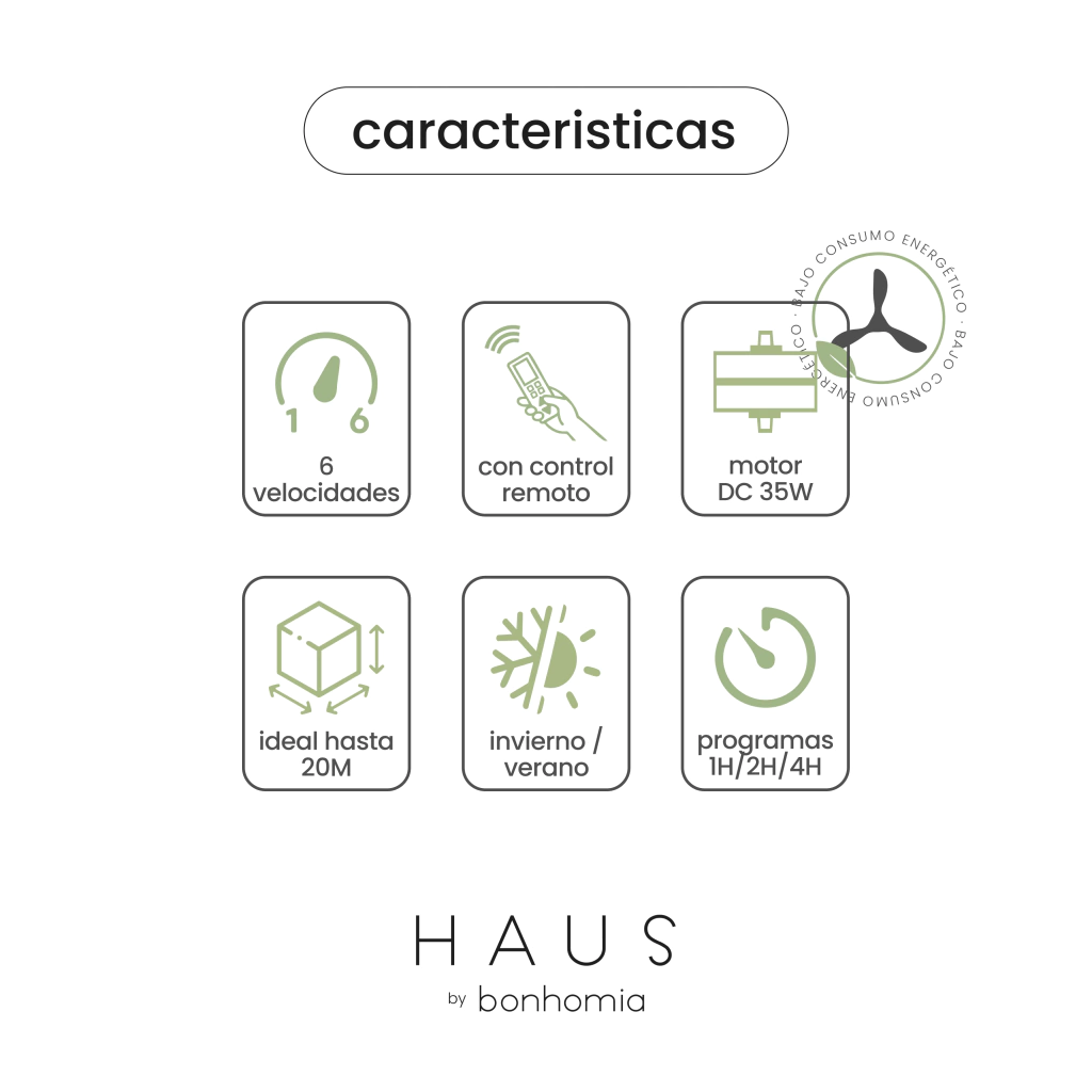 Funcion verano/invierno + 6 velocidades. Tiene temporizador programable hasta 4 hs.